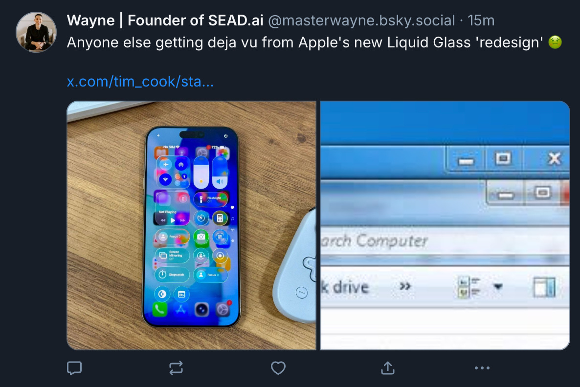 There’s a reason the internet keeps comparing Liquid Glass to Windows Vista. It’s not just the visual similarity. It’s the pattern: when a platform’s innovation curve slows, leaders often reach for design drama to signal momentum. Transparency. Animations. Rounded everything. The illusion of progress without the substance.